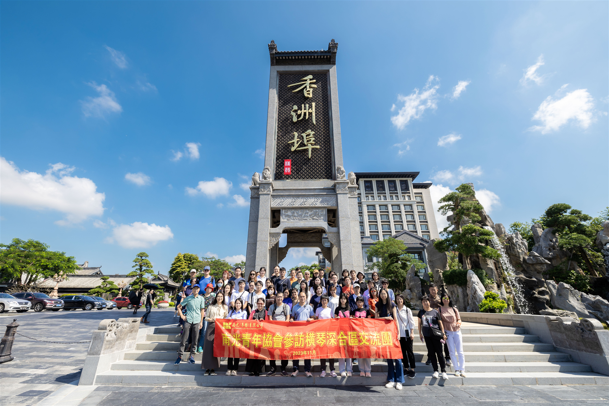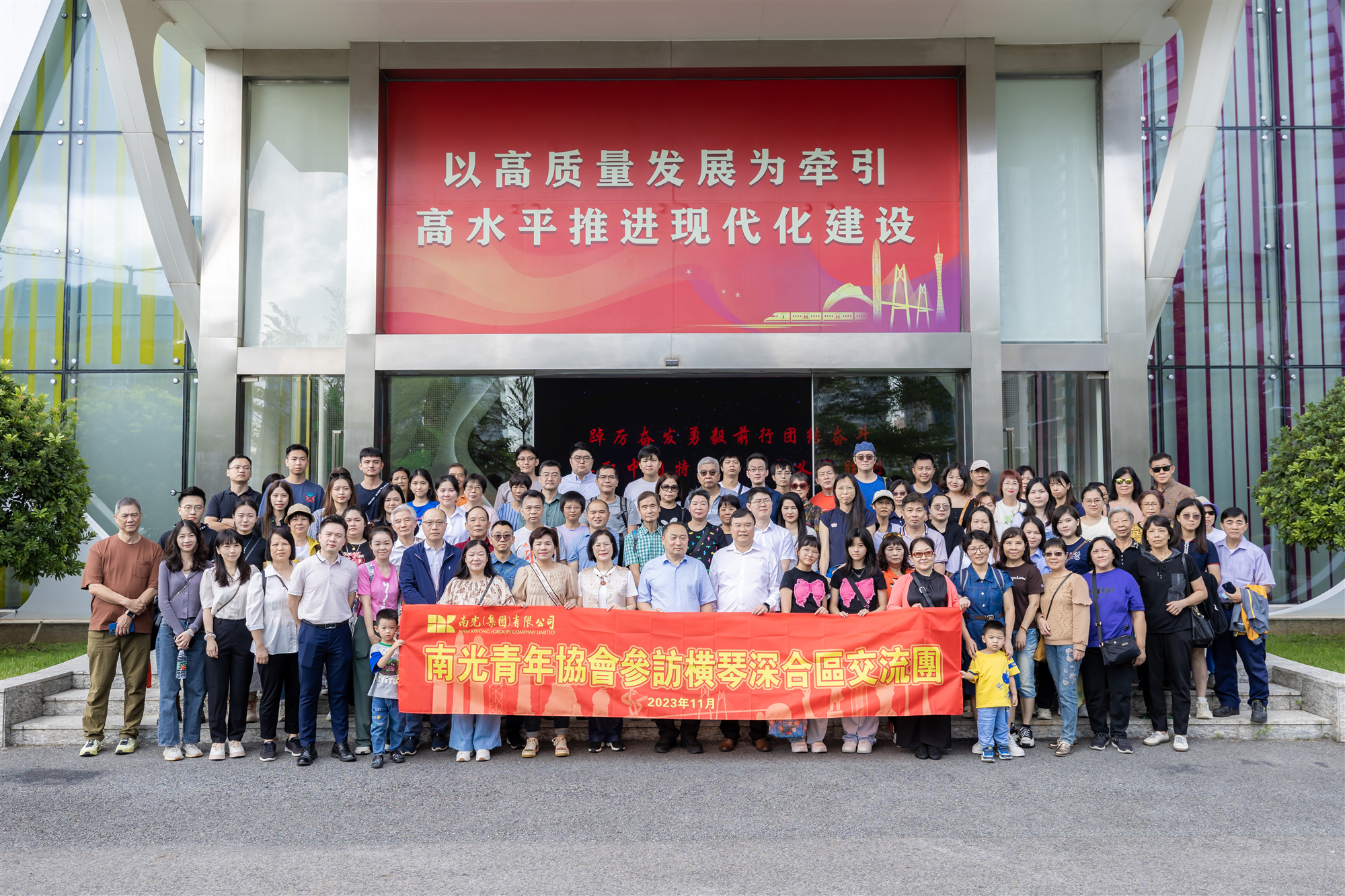 11月4日,南光青年协会组团参访横琴粤澳深度合作区。此行获横琴粤澳深度合作区民生事务局、民众琴澳事务委员会、澳门都市更新股份有限公司和濠江中学的热情接待。民生事务局副局长许凤梅和濠江中学副校长陈虹欢迎南光青年来横琴现场调研,并为参观行程作了周到细致的安排。“南光青年参访深合区交流团”由集团总经理姜维亮带队,集团及属下各单位青年员工及其家属等近百人参加。