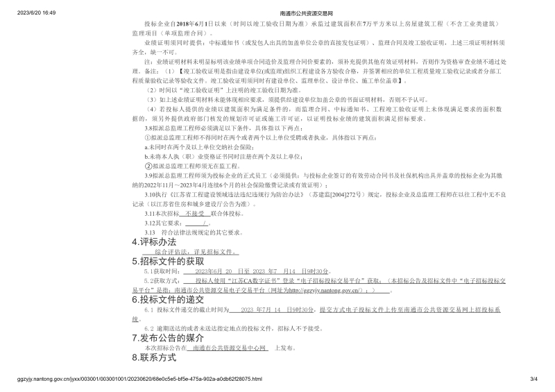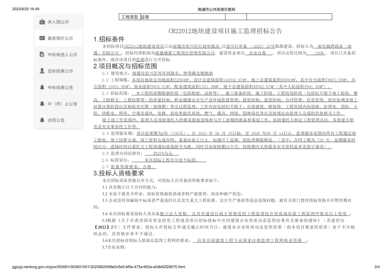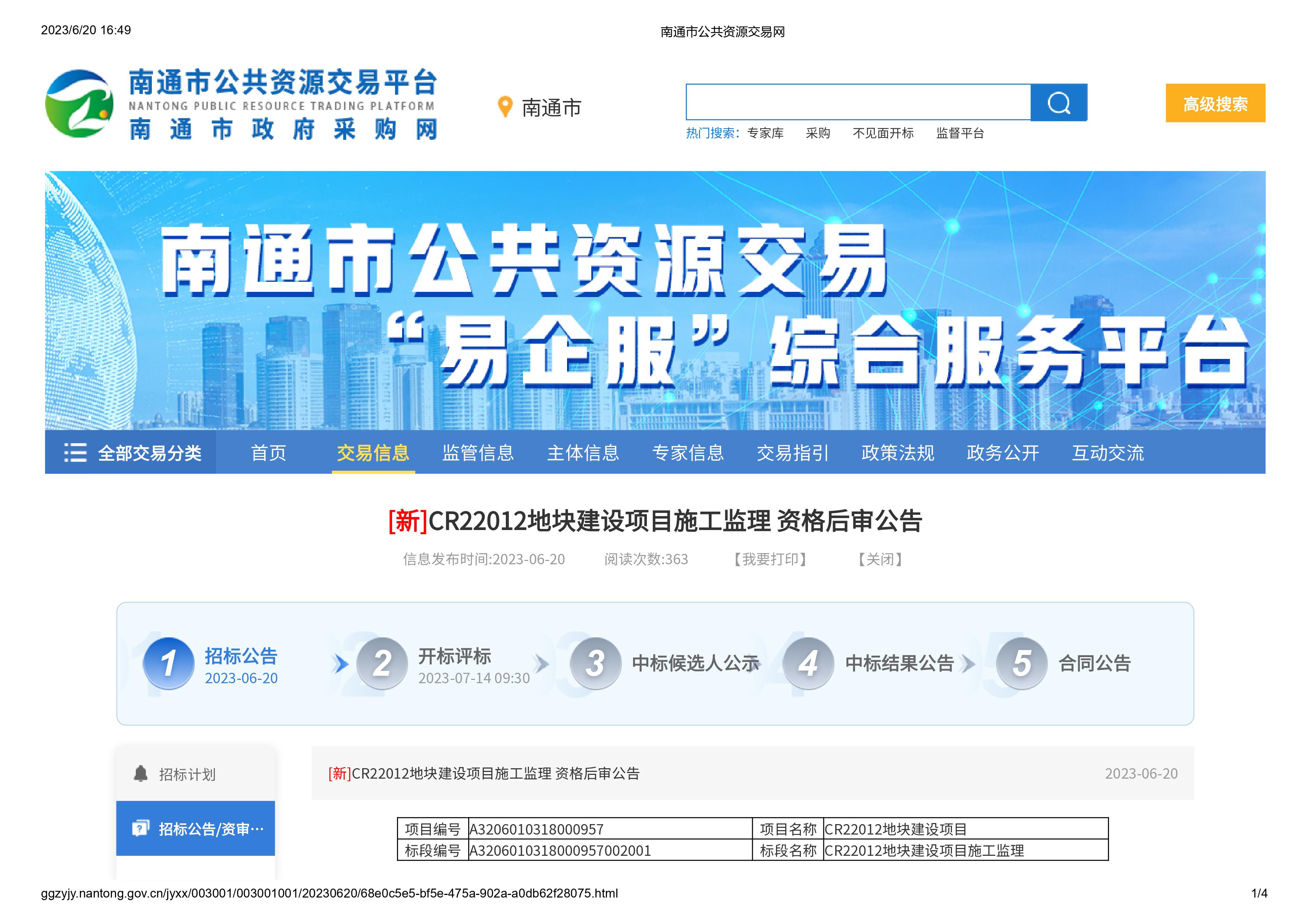南通CR22012地块建设项目施工监理招标公告.pdf