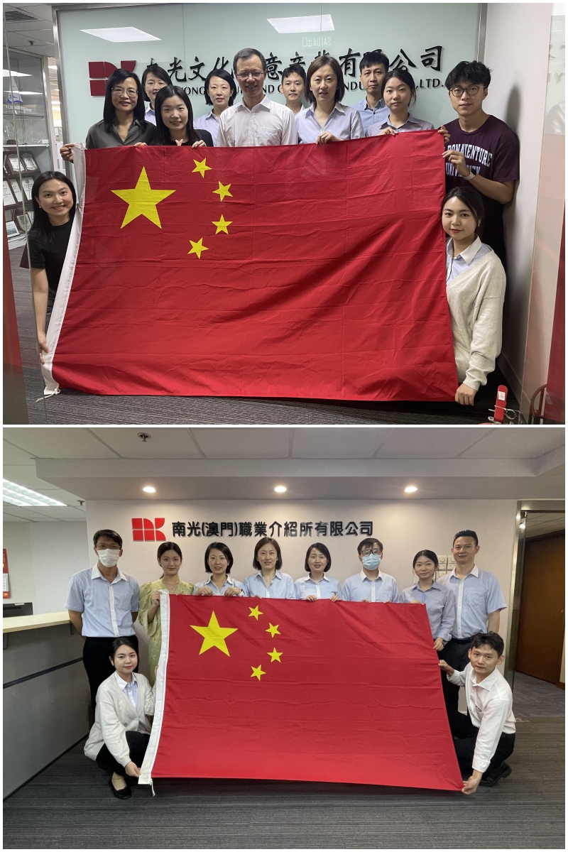 南光澳中旅南光澳中旅员工与国旗同框,向祖国致敬。