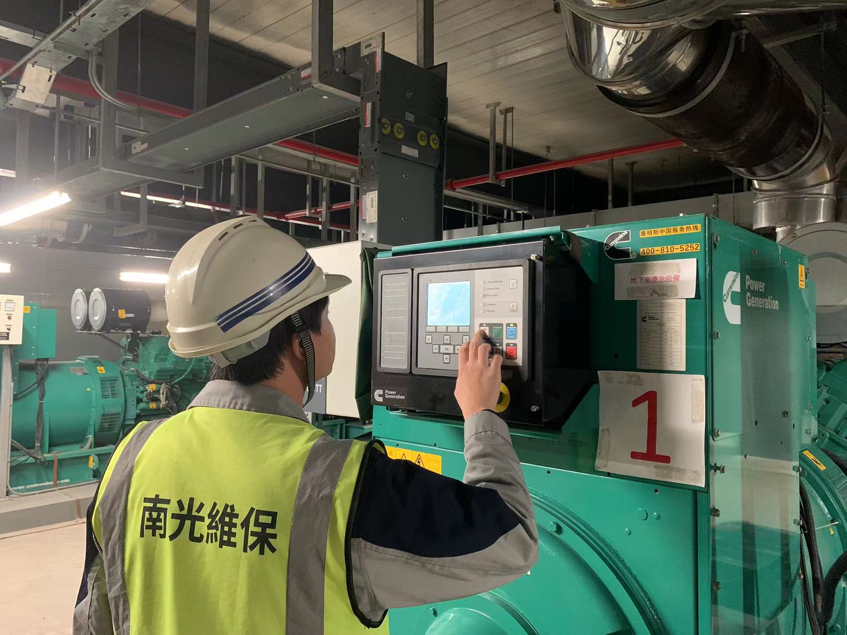 港珠澳大桥边检大楼项目部员工进行后备发电机功能检测,确保口岸运作不受中断。