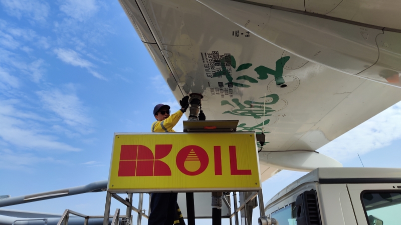 机场油库飞机加油员正在执行航机加油任务,确保澳门国际机场航煤保障安全、准时、高效。
