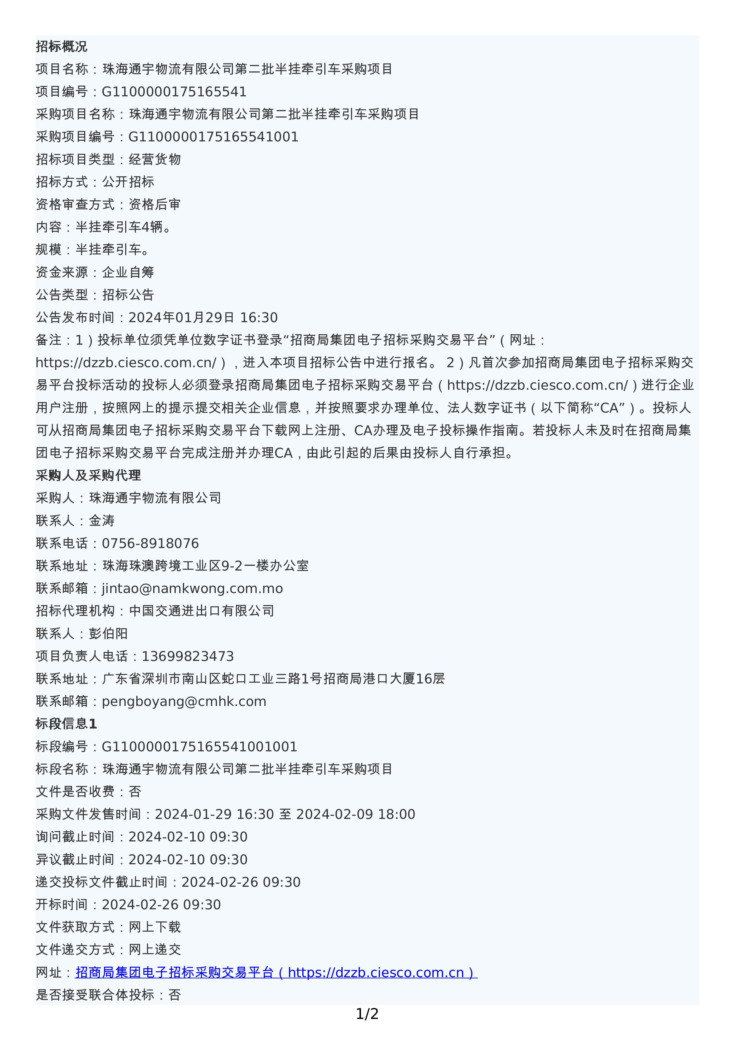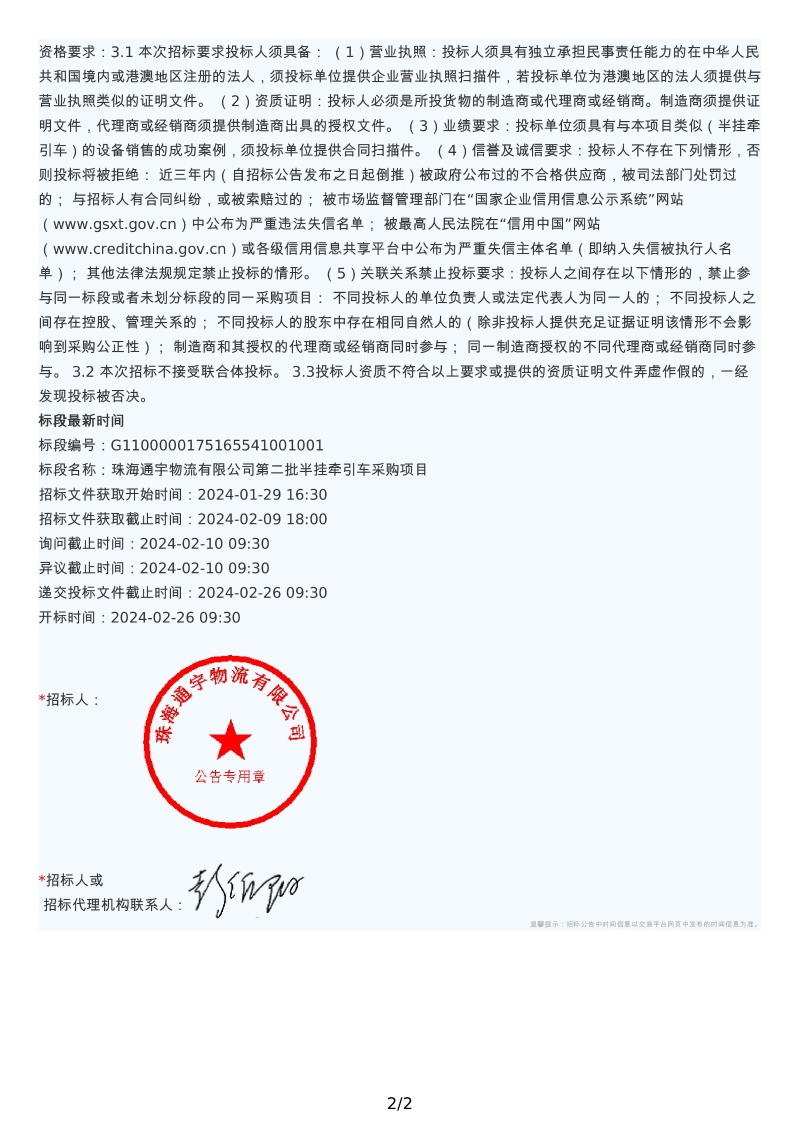 珠海通宇物流有限公司第二批半挂牵引车采购项目招标公告.pdf