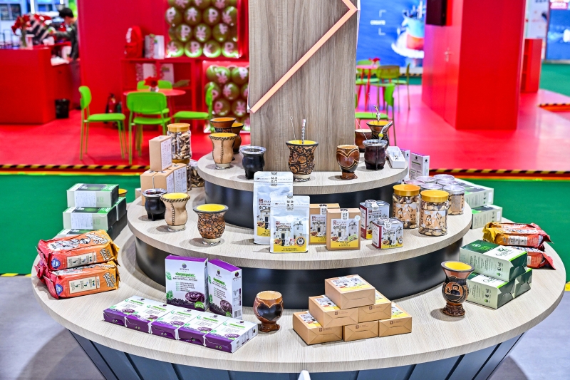 集团展台今年设置企业展示区和产品展示区,以视频互动方式展现公用事业与基础民生服务、文化旅游及相关技术服务、城乡建设运营、商贸物流服务四大主业,陈列展示集团各业务线条共计四大类47个特色产品,并设置京东巴西国家馆商品直播等精彩环节。工作人员现场冲泡产自巴西的咖啡、马黛茶等特色饮品,详细介绍产自葡萄牙的红酒、进口矿石、皮草等外贸商品以及万豪轩曲奇、澳门IP主题盲盒等极具澳门特色的展品,更好呈现南光集团为助力澳门“一中心、一平台、一基地”建设、促进澳门经济适度多元发展和澳门融入祖国发展大局作出的贡献,也为集团各业务板块后续谋求商业合作争取更多机会。