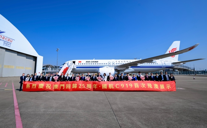 澳门特别行政区政府行政长官代表、运输工务司司长罗立文,国务院国资委宣传工作局副局长王莹,澳门特别行政区民航局局长潘华健,南光(集团)有限公司总经理姜维亮、副总经理宋晓冬,澳门国际机场专营股份有限公司执委会主席陈颖雄,新濠博亚娱乐有限公司董事钟玉文,澳门航空股份有限公司服务与商务副总经理张允,以及中国商用飞机有限责任公司营销中心副总经理刘艳等嘉宾出席欢迎仪式,并迎接随机而来的中国航空集团有限公司董事崔晓峰一行。