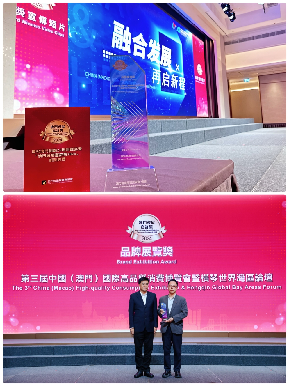 经评审委员会一致决议,本届“澳门会展嘉许奖”共嘉许18个会展品牌及企业,其中,由集团主办的第三届中国(澳门)国际高品质消费博览会暨横琴世界湾区论坛荣获“澳门会展嘉许奖2024”之品牌展览奖。
