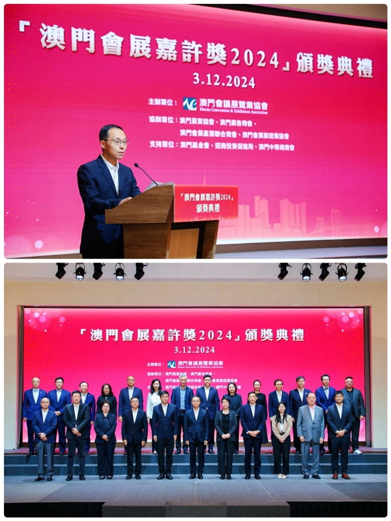 12月3日,由澳门会议展览业协会主办的“澳门会展嘉许奖2024”颁奖典礼在澳门旅游塔会展中心举行。集团副总经理、澳门会议展览业协会会长宋晓冬出席颁奖活动并致辞,集团企业管理部、南光物流、南光文创相关负责人等参加活动。