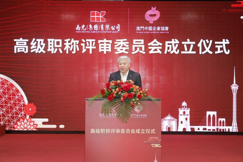 4月16日上午,南光集团高级职称评审委员会成立仪式于澳门万豪轩成功举办,标志着南光集团与澳门中国企业协会共同组建的工程系列、会计系列、经济系列高级职称评审委员会正式成立。澳门中国企业协会会长、南光集团董事长傅建国出席并致辞,南光集团总经理姜维亮宣读国家人社部备案函。澳门中联办人事部和经济部、澳门特区政府经济及科技发展局、澳门工程师学会、澳门生产力暨科技转移中心、澳门土木工程实验室、澳门会计专业联会、澳门中国企业协会、有关在澳中资企业、高级职称评审委员会等单位的领导嘉宾出席活动。