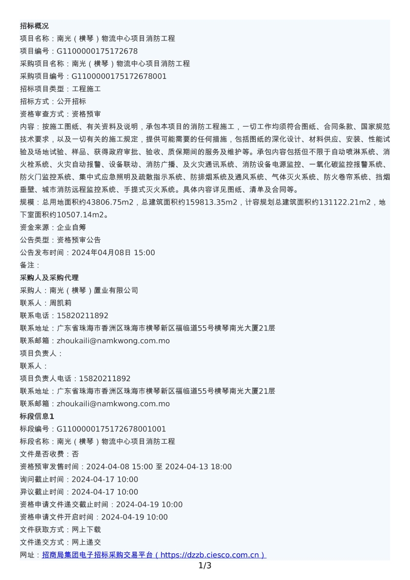 南光(横琴)物流中心项目消防工程资格预审公告.pdf