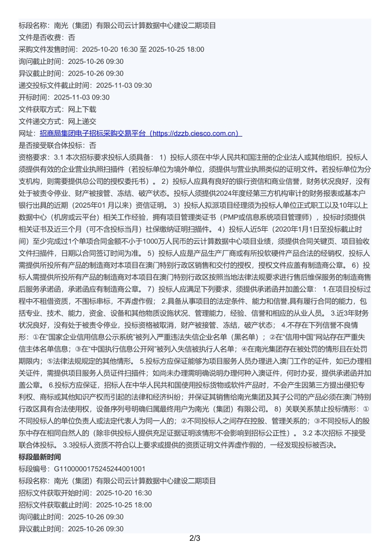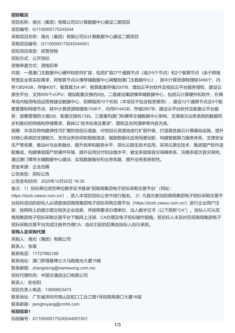 南光(集团)有限公司云计算数据中心建设二期项目招标公告.pdf