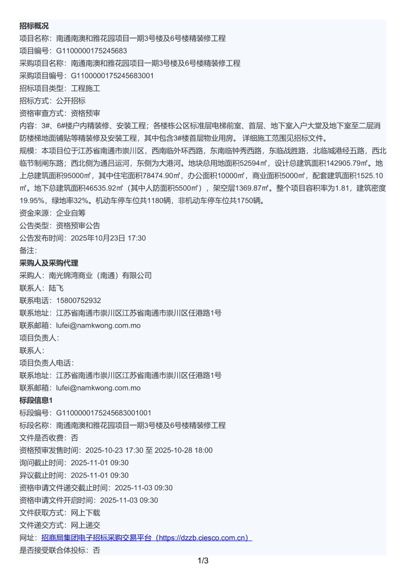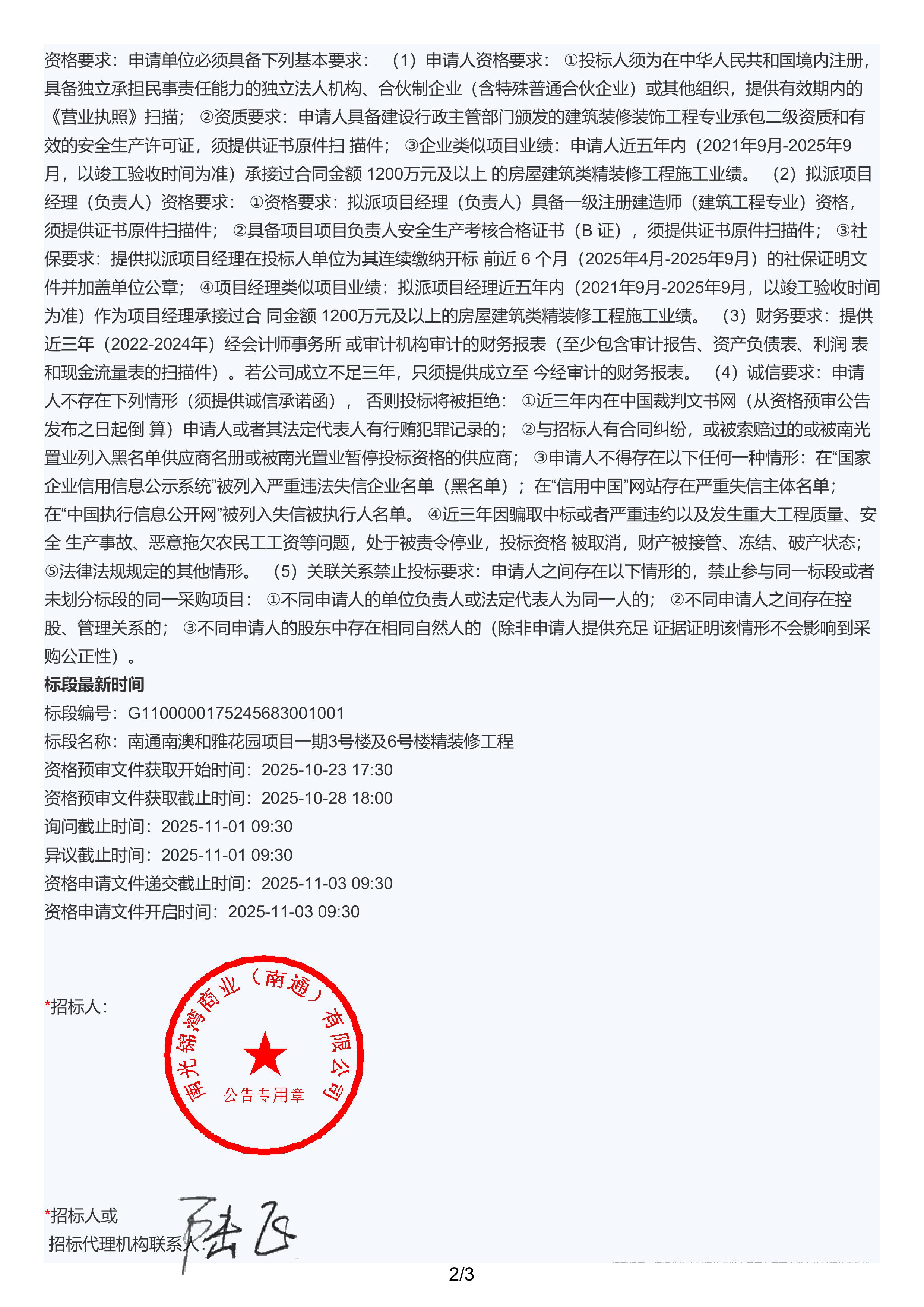 南通南澳和雅花园项目一期3号楼及6号楼精装修工程资格预审公告.pdf