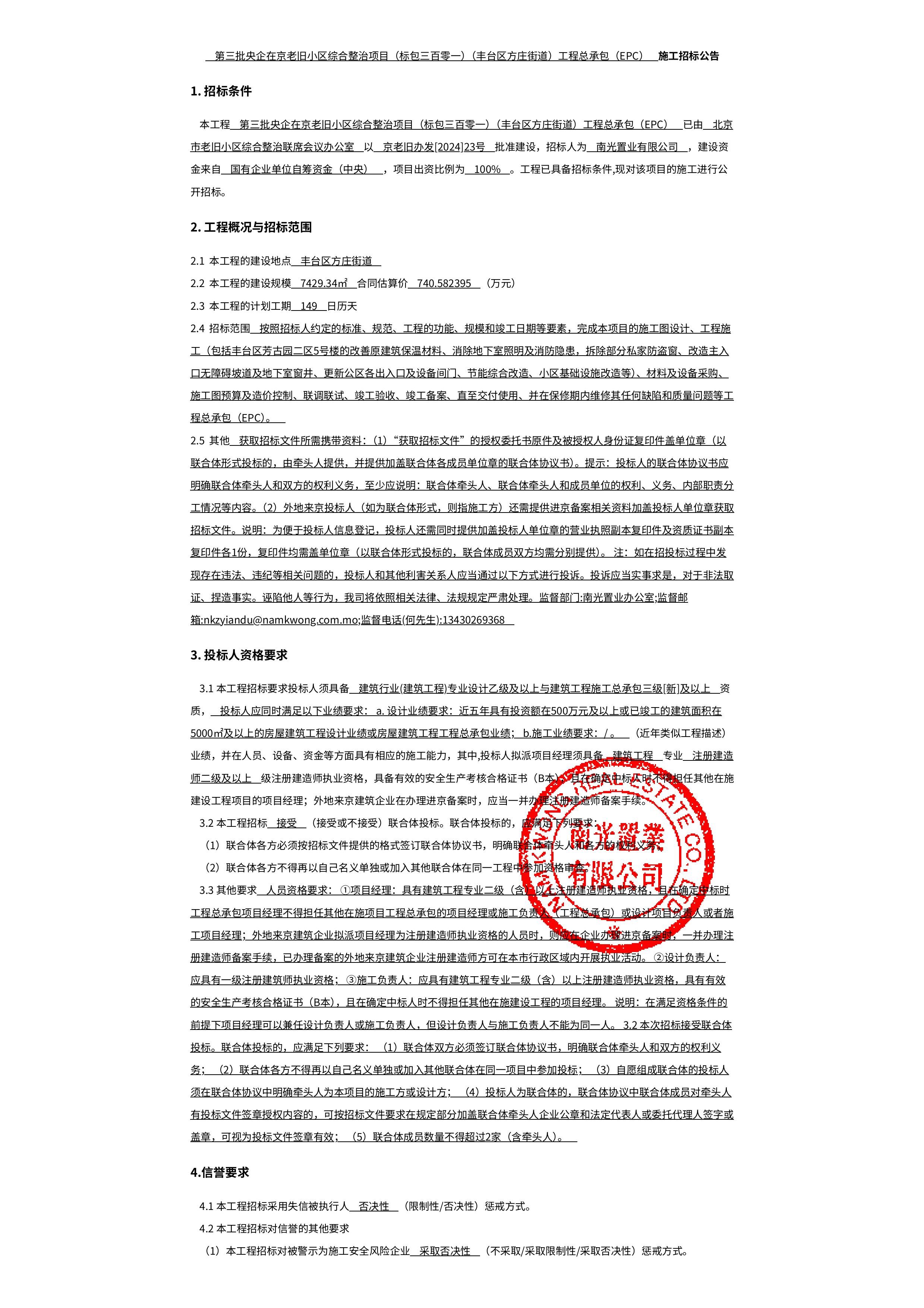 第三批央企在京⽼旧⼩区综合整治项⽬(标包三百零⼀)(丰台区⽅庄街道)⼯程总承包(EPC)招标公告.pdf