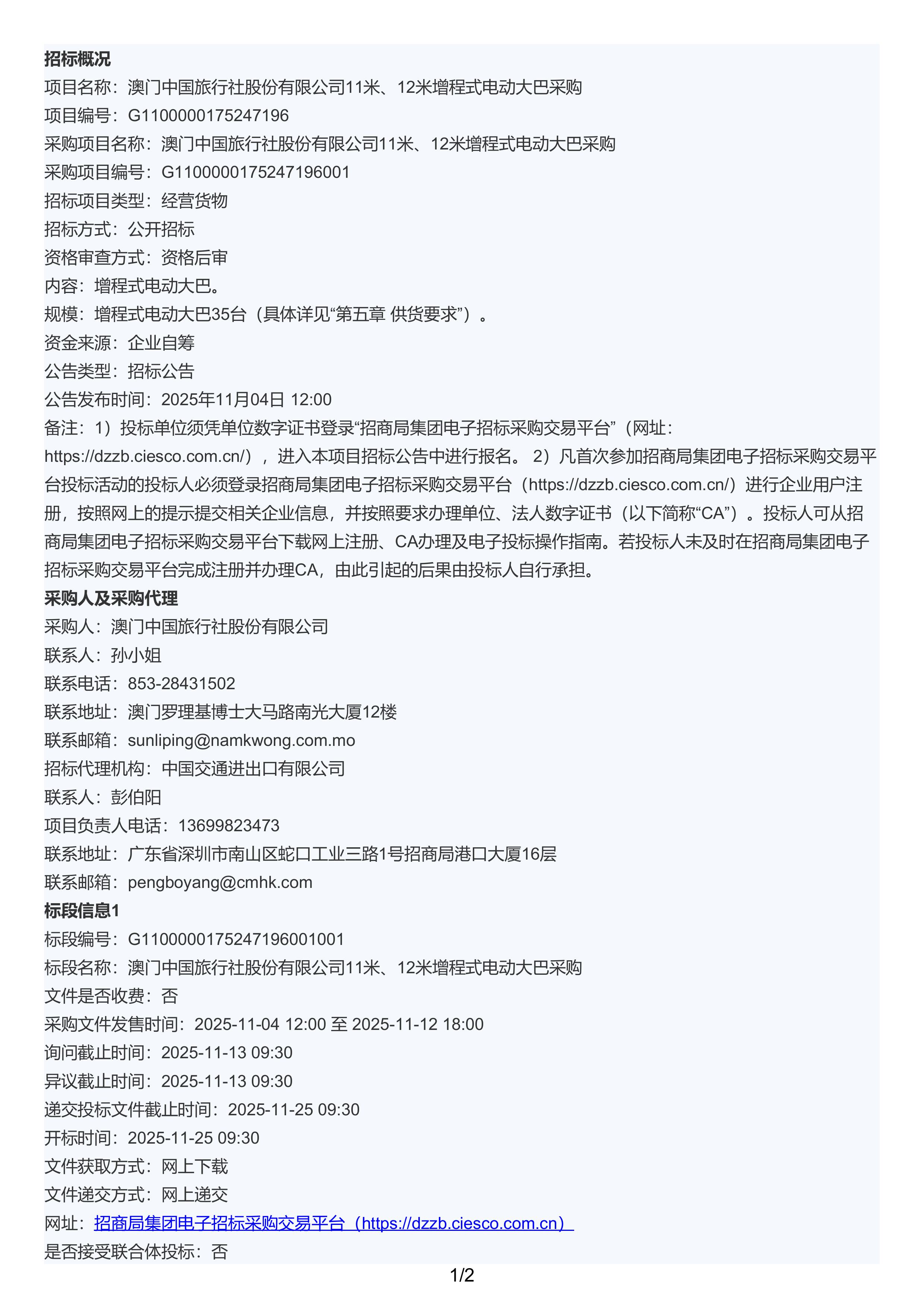 澳门中国旅行社股份有限公司11米、12米增程式电动大巴采购招标公告.pdf