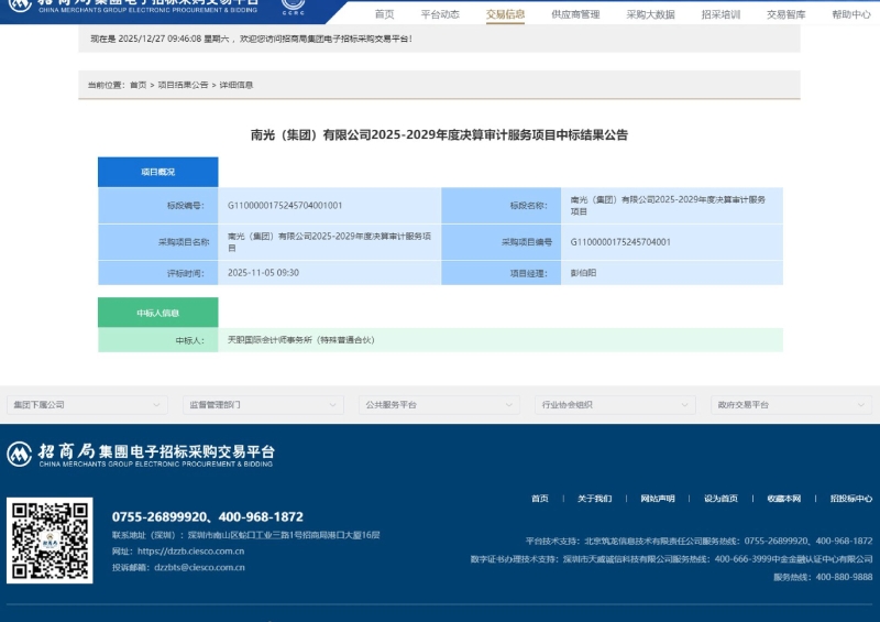 南光(集团)有限公司2025-2029年度决算审计服务项目中标结果公告.pdf
