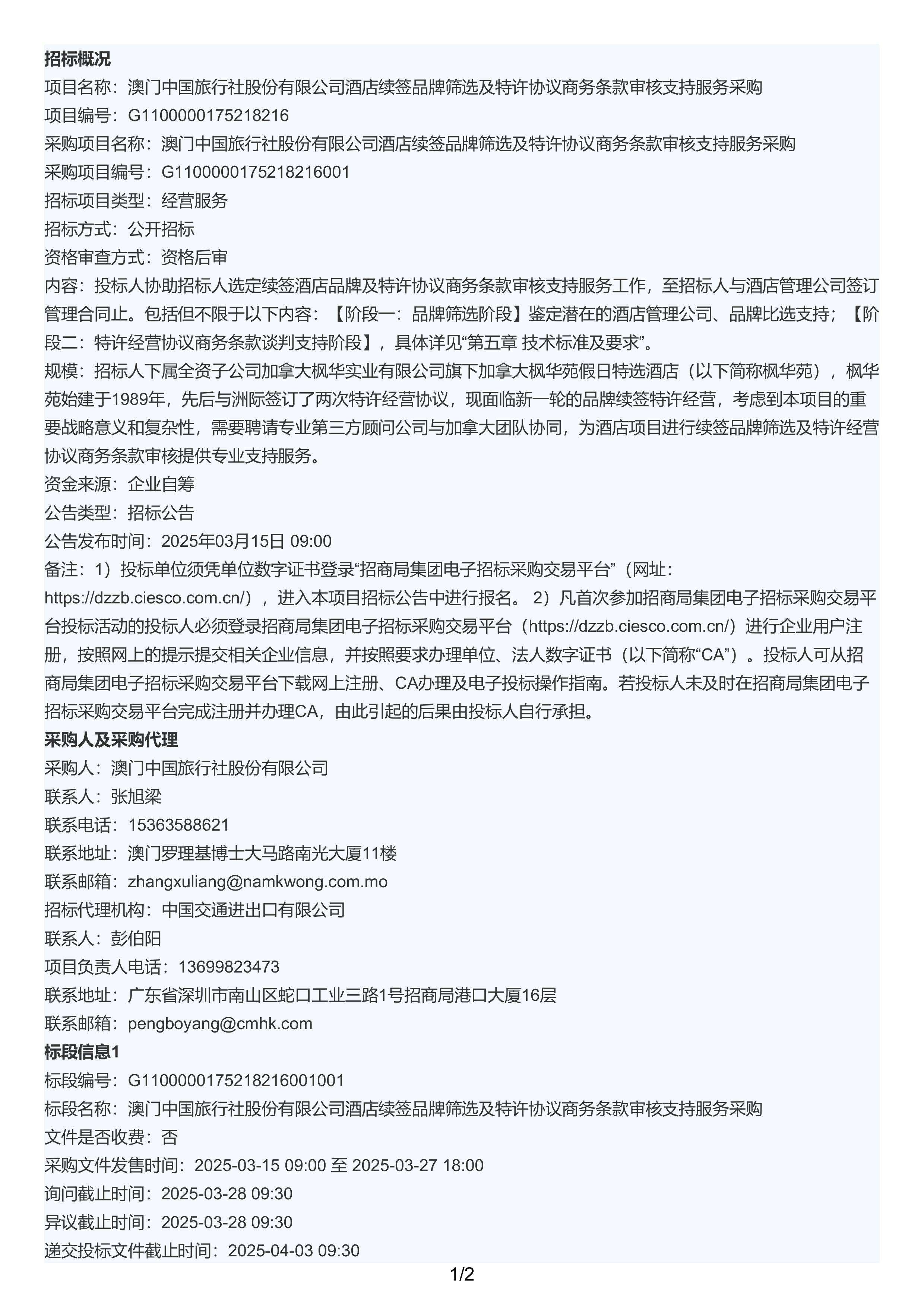 澳门中国旅行社股份有限公司酒店续签品牌筛选及特许协议商务条款审核支持服务采购招标公告(1).pdf