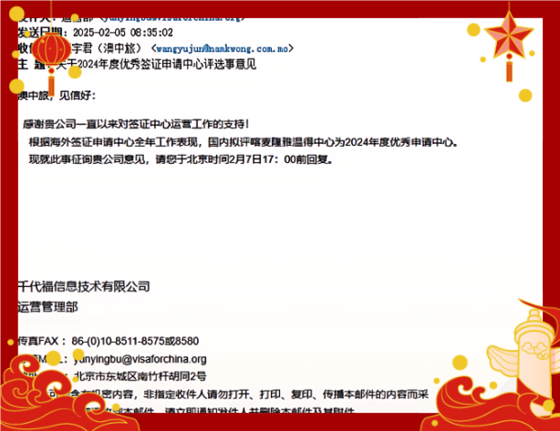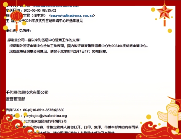 近日,南光澳中旅下属喀麦隆雅温得中国签证服务中心(简称喀麦隆签证中心)凭借出色的运营与服务,在千代福2024年度全球近110家中国签证申请中心的评选中脱颖而出,成功入选“2024年度优秀签证中心”。这是继澳门签证申请中心荣获2023年度优秀签证中心后,南光澳中旅签证中心再次获此殊荣。