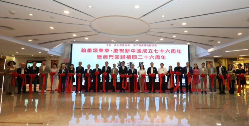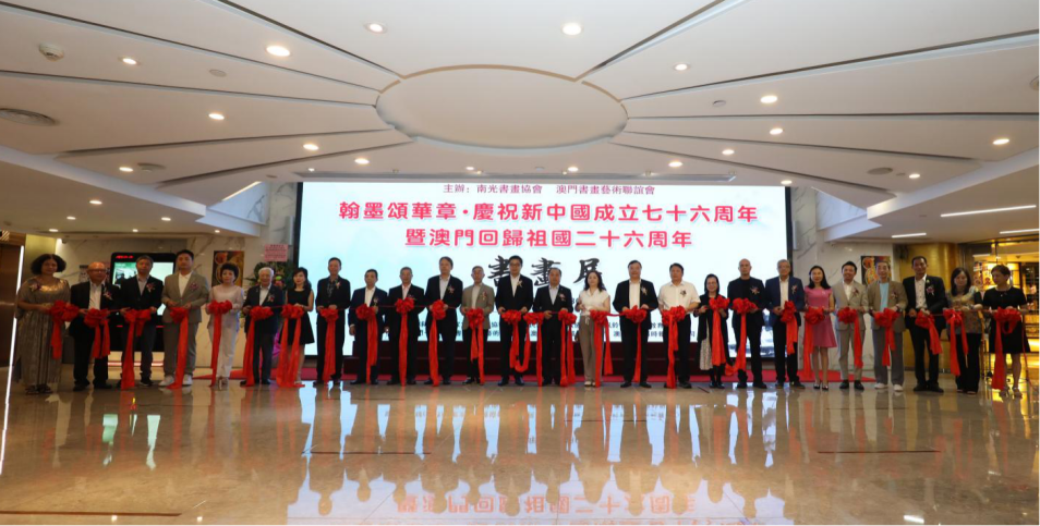 9月18日下午,为期两周的由南光书画协会、澳门书画艺术联谊会联合举办的“翰墨颂华章——庆祝新中国成立76周年、澳门回归祖国26周年书画展”在澳门万豪轩开幕。