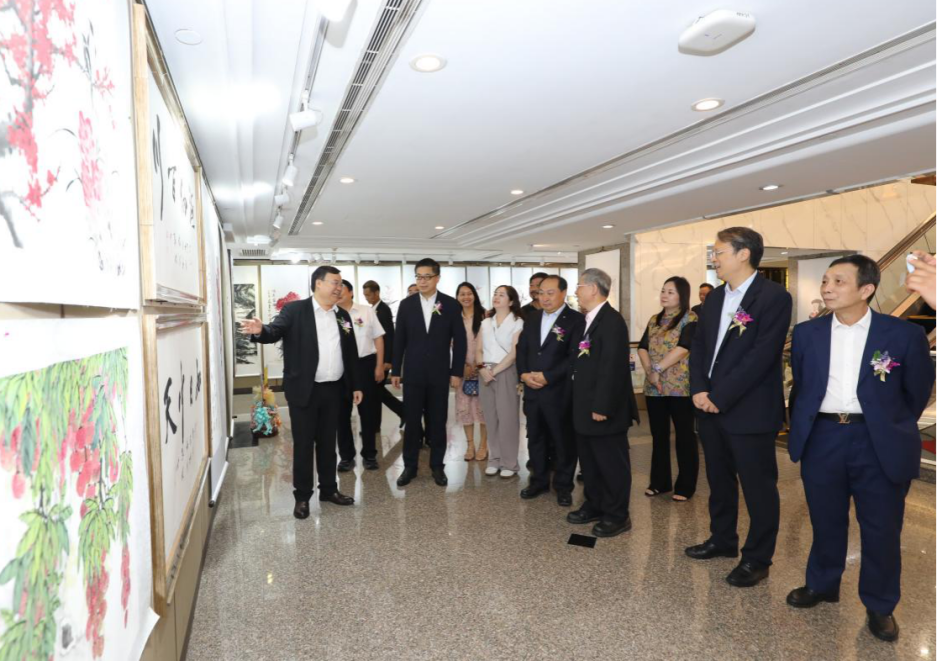 澳门中联办宣传文化部部长万速成,南光集团总经理姜维亮,南光集团董事、副总经理张沛然,澳门文化局视觉艺术发展处处长尹保伦,澳门教育及青年发展局教育资源中心主任苏智敏,澳门立法议员、南光书画协会会长张健中,澳门书画艺术联谊会会长李秋平等领导嘉宾出席并主礼开幕仪式。