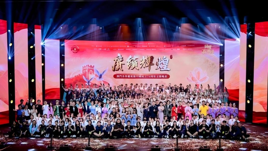 星光映辉煌,齐心创未来。由南光集团与有关企业团体共同捐助支持、澳门13家主要社团联合主办的“同声歌祖国:赓续辉煌——澳门各界庆祝新中国成立76周年文艺晚会”于9月20日晚在澳门文化中心举行。澳门特区行政长官岑浩辉,中央政府驻澳门特区联络办公室主任郑新聪,中国文联党组书记、副主席、书记处书记张政,外交部驻澳门特派员公署特派员刘显法,中国人民解放军驻澳门部队政治工作部主任高好良,澳门中国企业协会会长、集团董事长傅建国,集团董事、副总经理张沛然,以及澳门有关社团代表、企业代表、澳门青年及学生代表、社会知名人士等近千人到场观看。