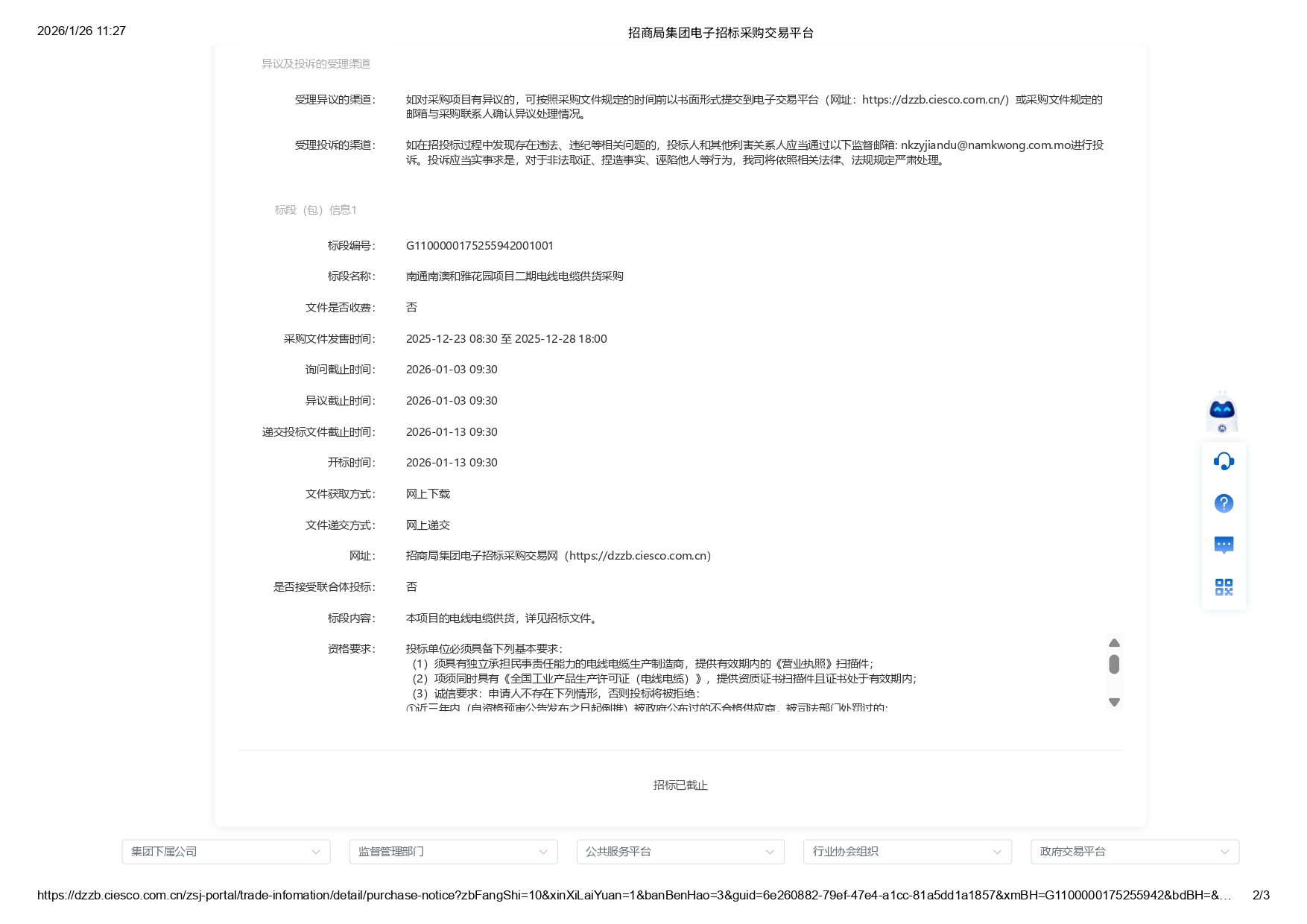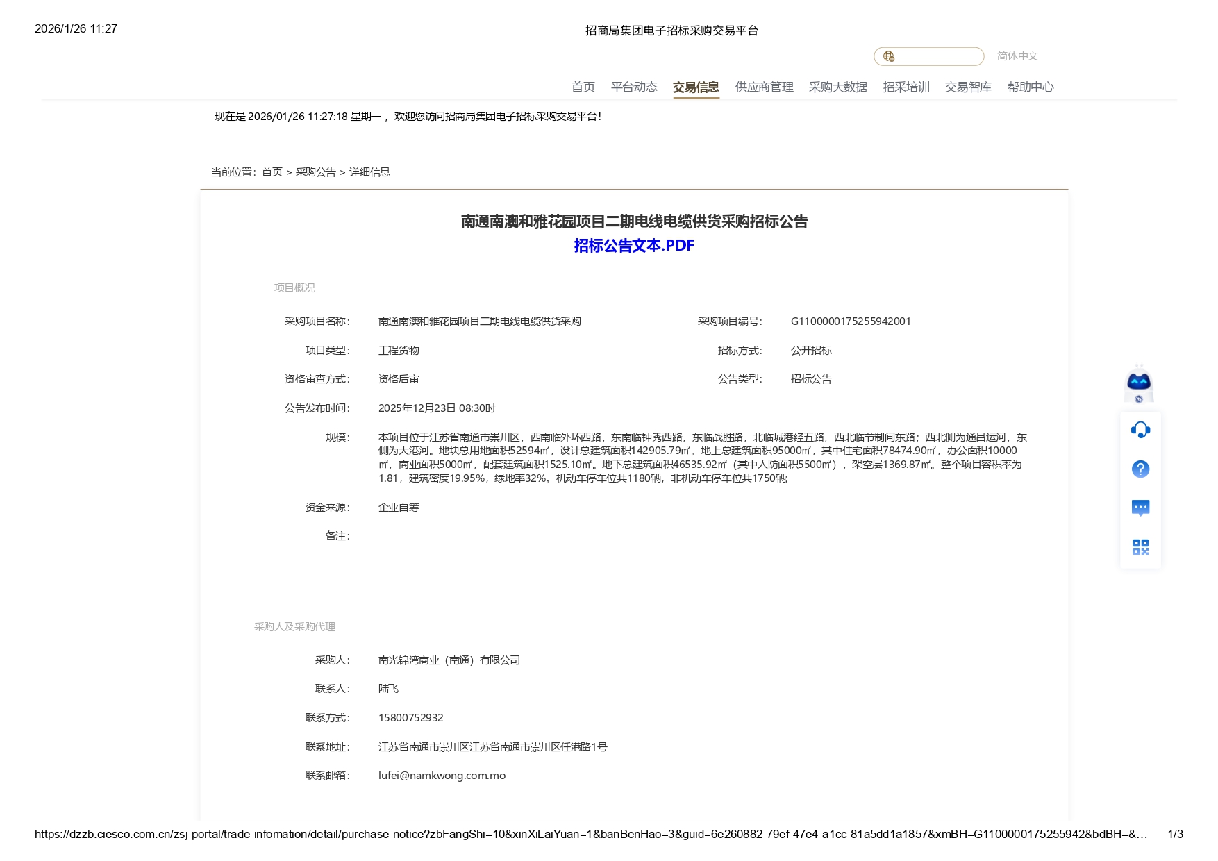 招商局集团电子招标采购交易平台-南通南澳和雅花园项目二期电线电缆供货采购招标公告.pdf