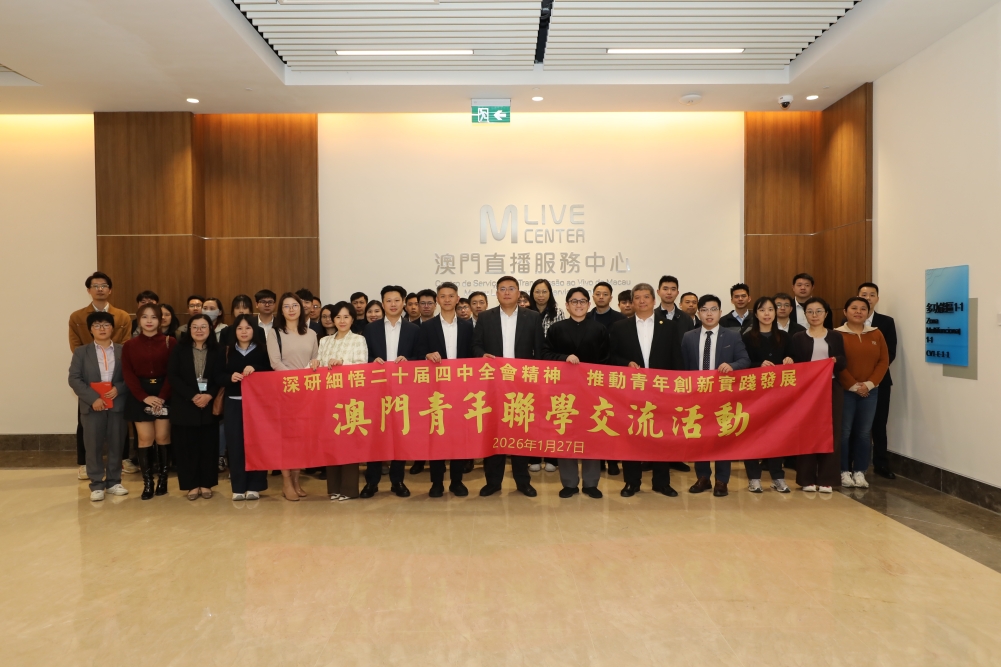 2026年1月27日,南光青年协会、澳门直播协会、工银澳门青年协会、澳门云浮青年协会、澳门南山青年协会和澳门大学学生会校友会等6家青年社团,组织近60名澳门青年代表,在澳门中葡综合体共同举办“深学细悟二十届四中全会精神、推动青年创新实践发展”青年联学共建交流活动,凝聚青年力量,推动全会精神在澳门落地见效。
