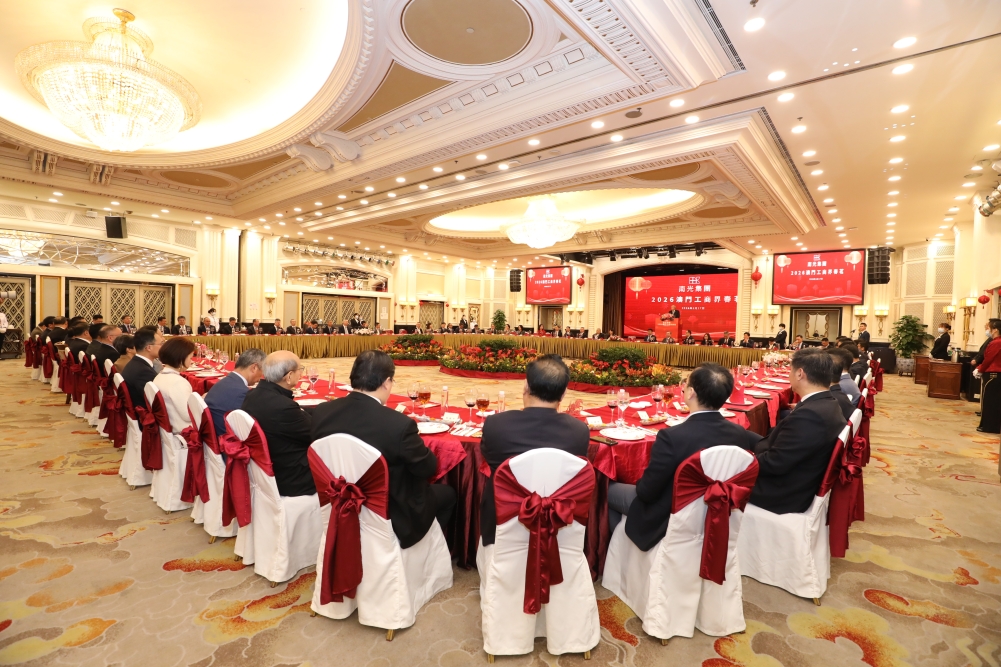 3月17日晚,南光集团在万豪轩举办2026年澳门工商界春茗。澳门中联办经济部副部长杨全州,澳门特区政府经济财政司司长代表、财政局局长何燕梅,运输工务司司长代表、环境保护局副局长韦海扬,政策研究和区域发展局局长张作文,公共资产监督管理局代局长廖志汉,旅游局局长文绮华,劳工局局长陈元童,公共建设局局长林炜浩,澳门中华总商会永远荣誉会长许世元、会长崔世昌,澳门工商界人士及社会各界代表受邀出席。集团董事长傅建国出席活动并致辞,集团领导班子及有关职能部室、二级公司负责人参加活动,与澳门工商界人士深入交流,场面热烈。