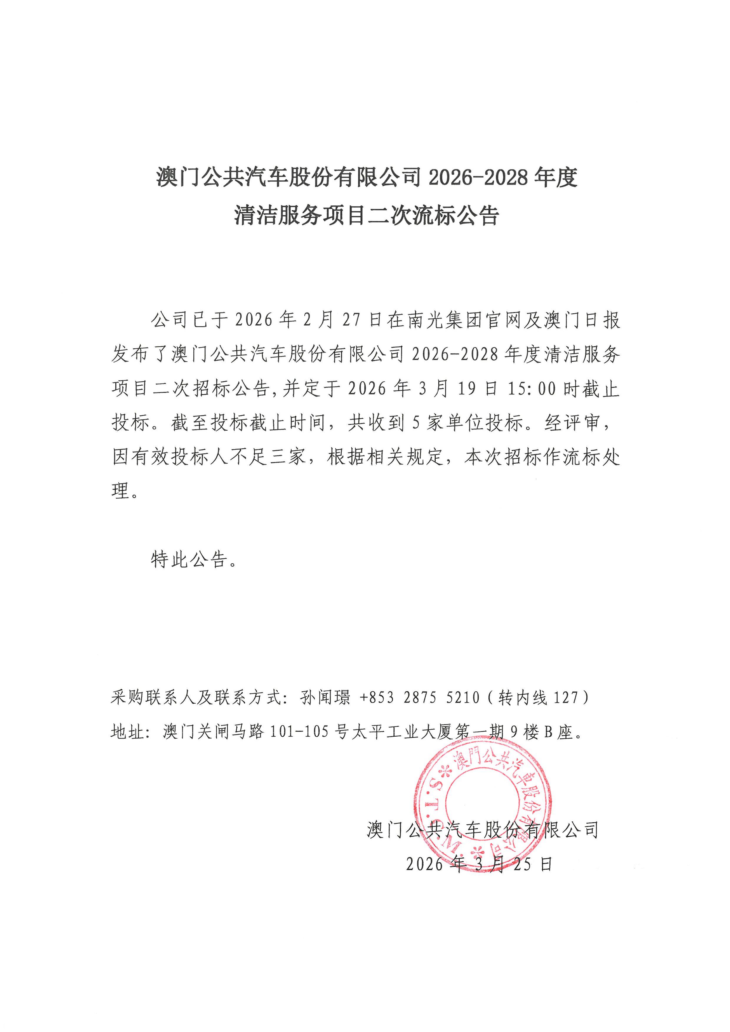 澳门公共汽车股份有限公司2026-2028年度清洁服务项目二次流标公告-20260325.pdf