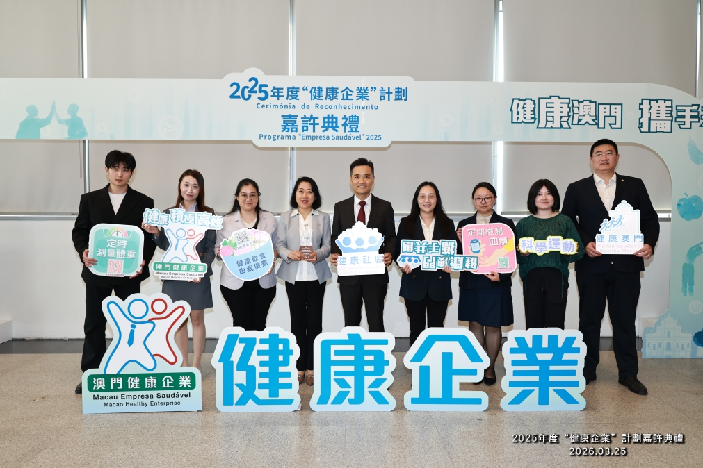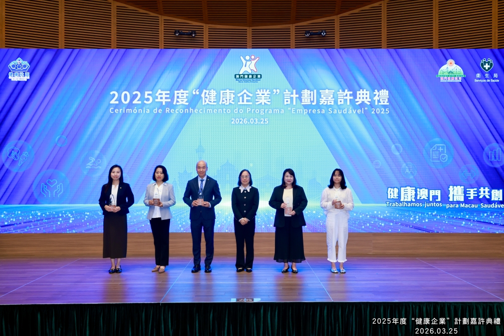 3月25日,由澳门卫生局举办的2025年度“健康企业”计划嘉许典礼在澳门科技馆圆满举行,澳门中联办人事部部长、社会发展部部长艾一平,卫生局局长罗奕龙等领导嘉宾出席典礼并颁奖。集团荣获2025年度“澳门健康企业”称号。